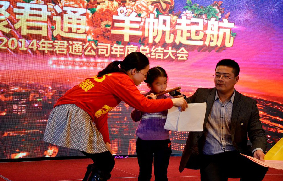 君通总经理尹可珍女士发表了热情洋溢的新年贺词。2000年10月尹可珍女士创立君通公司,几度风雨几度春秋,君通经过十四年发展成为本地IT行业中实力强的企业。熟识我的博友可能都知道,可珍晚常提到的君子兰,我好的女朋友。很开心参加这个欢乐的盛会,虽没有明星大腕,没有星光灿烂,却是每个君通人的倾情演绎,真情流露,好。