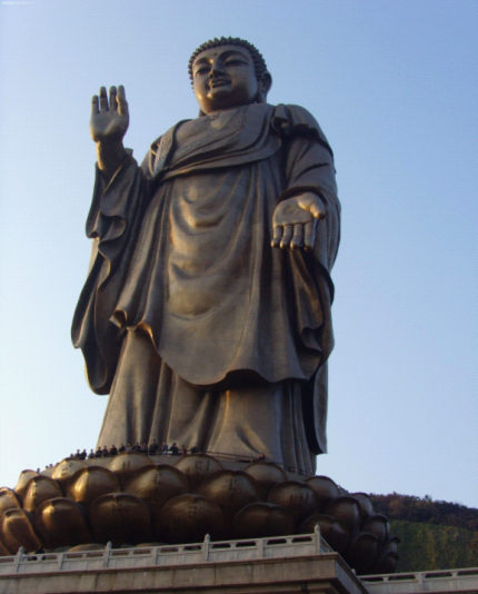 灵山梵宫坐落于烟波浩淼的太湖之滨,钟灵毓秀的灵山脚下,气势恢宏的建筑与宝相庄严的灵山大佛比邻而立,瑰丽璀璨的艺术和独特深厚的佛教文化交相辉映。灵山梵宫建筑气势磅礴,布局庄严和谐,总建筑面积达7万余平方米。整个建筑依山而建,集成了世界佛教三大语系的建筑精华,以其之“特”与灵山大佛之“大”、九龙灌浴之“奇”构成全新灵山胜境的三大奇观。汲取了中华传统木雕、石雕、玉雕等装饰精粹。步入梵宫,浓郁的文化气息扑面而来。东阳木雕、敦煌技师的手工壁画、琉璃巨制、扬州漆器、油画组图、景泰蓝须弥灯、景德镇青花粉彩缸、瓯塑浮雕壁画,这些艺术珍品在灵山梵宫各区域演绎着的传统文化。梵宫的文化不仅有静态、更有动态。灵山梵宫不愧为东方的“卢浮宫”。梵宫内珍宝荟萃,光彩四溢,充满着博大精深的佛教艺术气息。大块的石板建筑,金色的攒尖屋顶,精美的佛像浮雕,这仅仅是个开始,更加惊人的在梵宫内部。梵宫内部各建筑空间各独立且互相贯通,由门厅、廊厅、塔厅、圣坛、三传会议厅、千人宴会厅等组成。精雕细琢的东阳木雕、敦煌技师的手工壁画、光灿夺目的琉璃巨制、精致典雅的瓯塑浮雕壁画、技艺精湛的扬州漆器、恢宏大气的油画组图、古雅精丽的景泰蓝须弥灯、精美的景德镇青花斗彩缸……这些汇集众多文化遗产、众多艺术瑰宝的艺术珍品遍布灵山梵宫的各个区域,将的传统文化演绎得淋漓尽致,令人目不暇接、回味无穷。