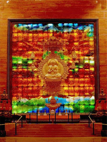 一点多钟,我们在具有会议和演出多功能的灵山圣坛,观看了一场由国内高水平团队导演排练的,以弘扬传统文化、启迪心灵智慧为主旨的音乐大典。领略了一番佛祖释迦牟尼由早年之奢华生活到入道成佛的心路历程,在看完这短短的二十分钟的演出之后,除了震撼之外残留在脑海中的唯有一片空白。我似乎领悟了一个字的深刻内涵——无!人生短短数十年,从裸身来到这个世界,终又悄然的离开这个世界,化成一颗尘埃。可以说是真正从无到无!一切皆无!!!佛,是一种大胸襟、大智慧、大热爱。所谓“灵心”,也许是对这一点的体悟吧?如果能够达到这样的境界,心内身外,无不是“净土”。