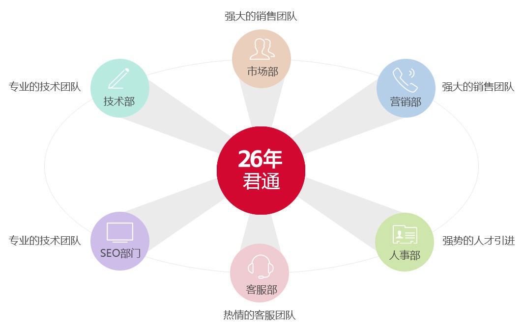 君通科技本着不断创新的经营理念和对市场的精准把握,为社会各界提供从域名主机、网站策划制作、集团邮箱等基础应用服务,到网站推广、电子商务等互联网服务的整体在线解决方案,以满足不同客户的需求。 凭借成熟稳定的管理团队,业内领先的技术力量,经验丰富的营销队伍,完善的本地化服务体系,以及良好的用户口碑,君通科技在激烈的市场竞争中始终走在行业前列。