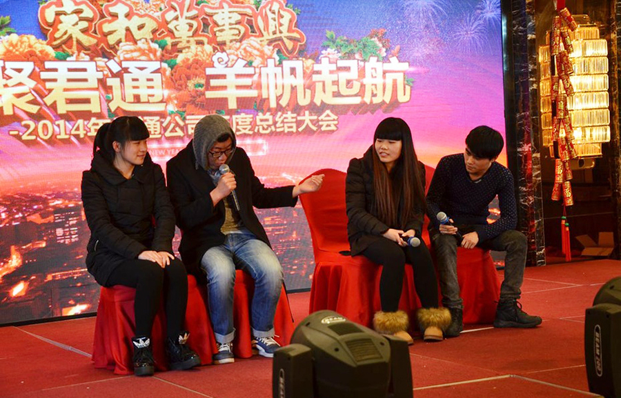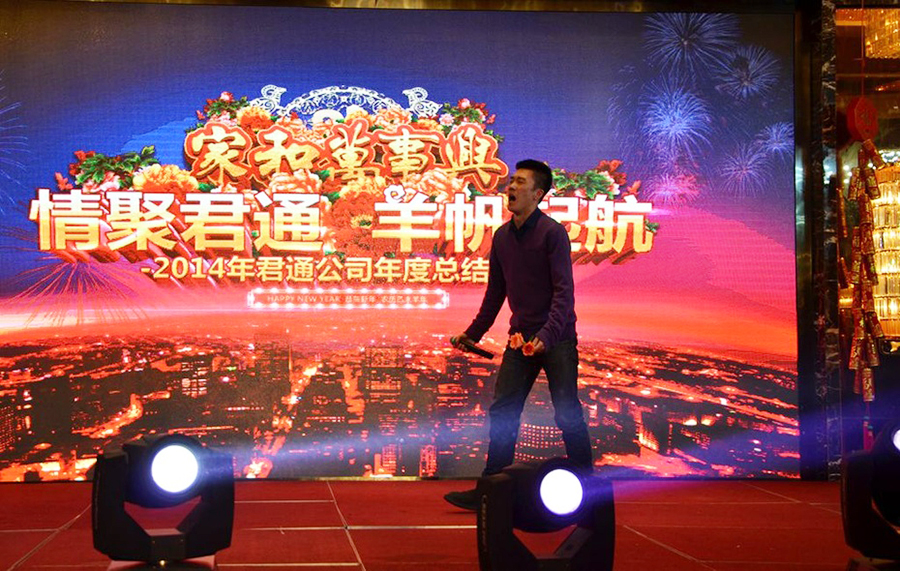 君通总经理尹可珍女士发表了热情洋溢的新年贺词。2000年10月尹可珍女士创立君通公司,几度风雨几度春秋,君通经过十四年发展成为本地IT行业中实力强的企业。熟识我的博友可能都知道,可珍晚常提到的君子兰,我好的女朋友。很开心参加这个欢乐的盛会,虽没有明星大腕,没有星光灿烂,却是每个君通人的倾情演绎,真情流露,好。