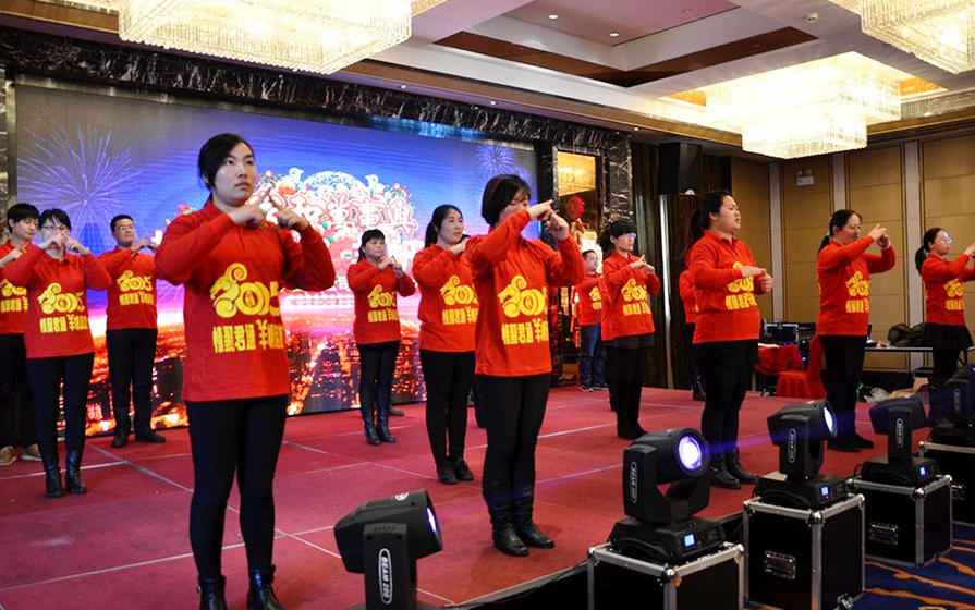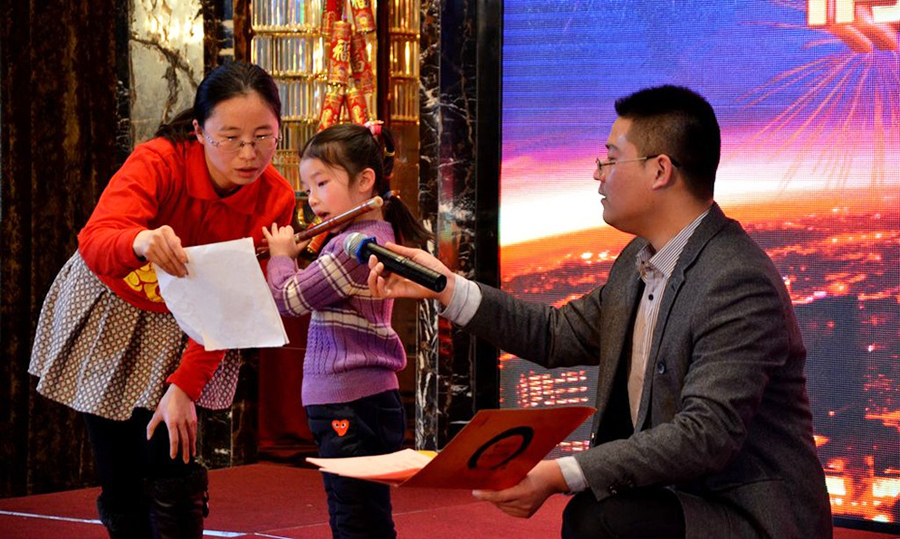 君通的春晚现场仿佛是一个欢乐的大家庭,演出以部门家庭为单位,更有许多员工可爱的孩子也表演了许多节目。 市场部的美女妈妈带着双胞胎女儿跳起了欢快的《小苹果》