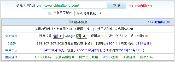 历史,让人忍不住去翻开,去寻找,去发现,君通15年的历史肯定比不上抗战那么久远,可是离我们也不是那么近,让我们去寻找历史,一个互联网公司能体现其历史的应该是其域名了,我能查到的君通老的域名是chinalitong.com,如下图示: