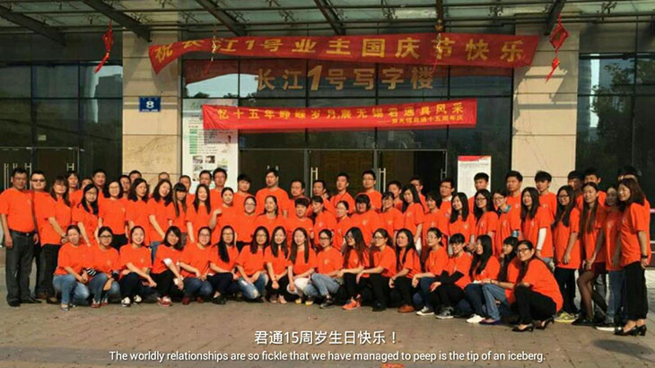 金秋十月,迎来了君通的15岁生日,10月21日清晨,君通人统一着君通15纪念服,喜气洋洋的等待着15典的开始,随着声声爆竹声的响起,拉开了君通15岁生日的序幕!