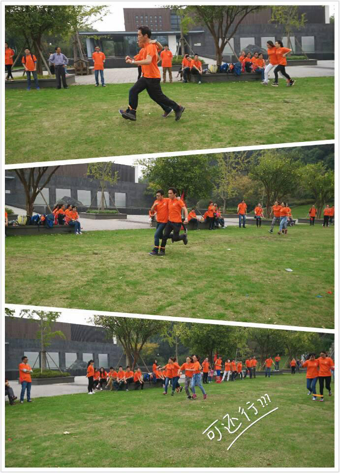 接下来是两人三足比赛,可谓是角逐激烈,看到那个跑的快的那组了吗?对!没错!是他们获胜了,技术部的小伙伴可是非常默契呢。