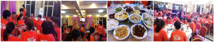 玩了,大家都流连忘返,到了晚宴时间了。看!丰盛吧!晚宴上尹总和王经理的一首《一见你笑》将气氛推向了高潮,康总的《爱拼才会赢》,刘红的舞蹈等等,君通可都是有才之人呢!