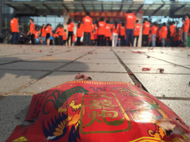 10月21日上午8点18分喜炮点燃了
