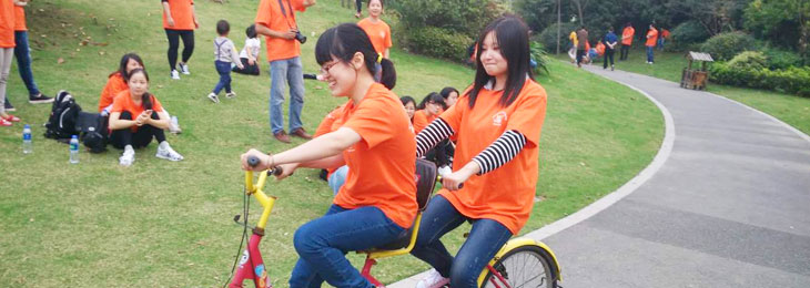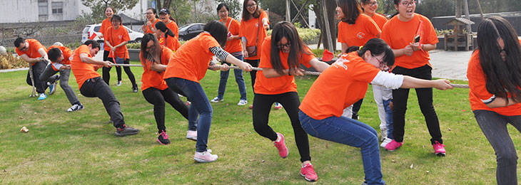 君通十五载,庆祝活动更是延续到了室外,10月24日,全体君通人共同前往大美阳山,进行了为期两天的户外游玩。一大早,人手一面小旗子挥舞着进入了大美阳山,苏州君通与无锡君通顺利会合,站在台阶上,迎着阳光共同呼喊着“快乐工作,幸福生活”的公司口号!随后团队拔河、两人三足、双人三人自行车慢行比赛这些考验培养团队合作的项目也逐一拉开帷幕,大家参与的热情高涨都出乎意料,为了胜利共同拼搏!团队拔河中,虽然我们技术部在轮败给了电话营销部,但那是因为我们还没有掌握拔河技巧,我们仍自豪与骄傲我们这个团队,相信以后的比拼中,我们一定能夺得!两人三足中,一开始大家为不平的男女生优势的问题,在比赛开始后立刻逆转,讲究协调合作性的两人三足,并不是单单跑得快能获胜,男生组纷纷在半途摔倒,而我和彭彭却成了技术部的黑马,一路过关斩将,终夺得了比赛第二的优异成绩!午休过后迎来了后一个竞技比赛双人三人自行车慢行比赛,他不比快,比谁骑得慢。短短的几十米赛程中,竟然有人以两分多的成绩到达终点,让我们站在赛道两边的人叹为观止,小蒋和小仇虽然没能夺得名次,但一分多的成绩也足矣肯定她们的付出!晚上的庆祝晚宴上,更是显示了君通人才济济,能人异士出类拔萃,君通人各个能说会道,能歌善舞,毫无准备的情况下,大家欢聚一堂,开怀高歌,白天的竞技比赛也在晚上进行了颁奖,每个人都沉浸在了这个喜悦而又美好的夜晚。