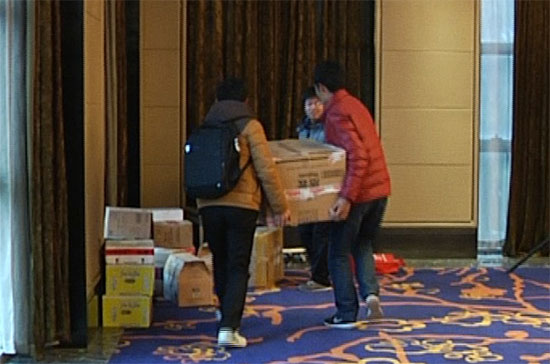一大早,我们早早的来到了场地,大家都在忙碌着为的晚会做着准备,男孩们在忙着搬运礼品到会场,悄悄去看了一下,公司准备了一大份礼品给我们。