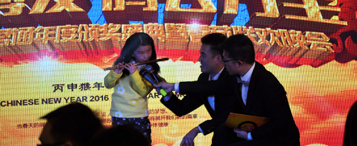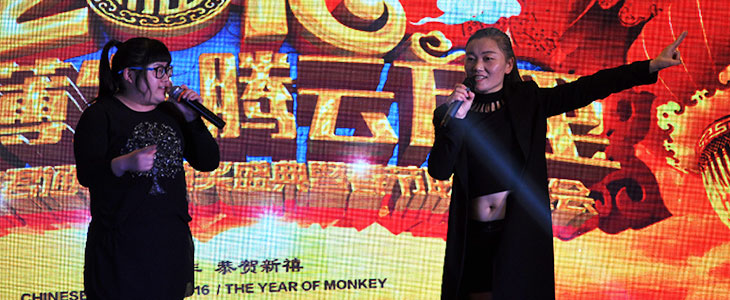 紧接着是尹总热情四溢的春晚致辞,君通人抖擞了精神准备好欣赏一场又一场激动人心的动感舞蹈、脍炙人口的歌曲、令人捧腹不已的小品、余音绕梁荡气回肠的古筝、铮铮铁骨的二胡独奏、优美动听的笛子独奏、余音袅袅不绝于耳的葫芦丝演奏等精彩绝伦的节目,瞧瞧,咱们君通真是藏龙卧虎、人才辈出啊!是不是很期待她们的表演呢?让我们君通的大伙伴小伙伴们尽情地唱吧、跳吧、笑吧,让我们一起迫不及待地为君通杯春晚开幕: