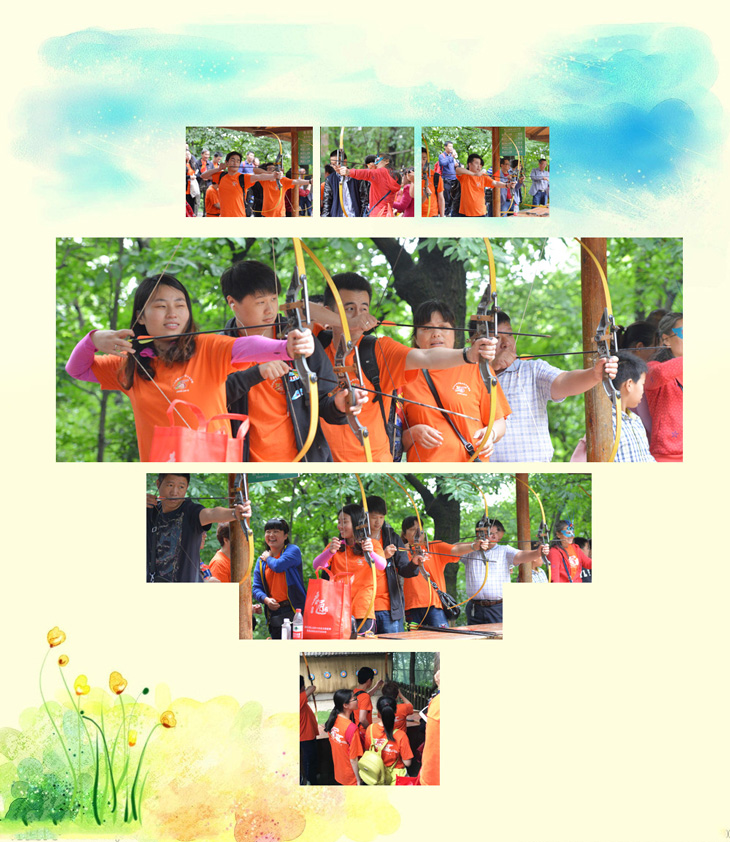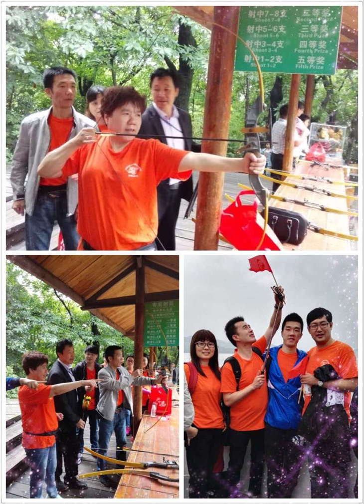 远处传来电视剧《射雕英雄传之铁血丹心》主题曲,射箭高手们准备好了吗?看我们的彭郁哥哥的射箭阵势,在一旁观战的尹总、朱老板、王博等也纷纷踊跃参战: