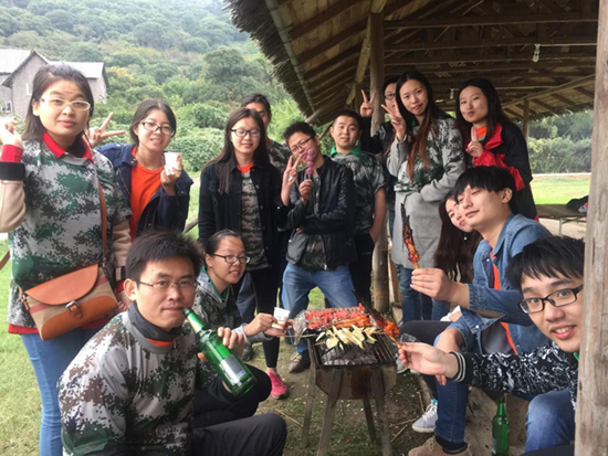 早上我高高兴兴的来到公司,然后大家一起上了大巴车。经过一个半小时左右的汽车的颠簸,我们终于来到了我们这次司庆的地点——踏青农庄。一切准备工作做好后,我们开始了我们环节:做游戏。为了让我们公司的员工更加有团队精神,行政部门也想了很多有趣的游戏,让我们也体会到了团队合作的重要性。印象深的当然还是拔河了,我也参加了,虽然没有获得胜利,但是也很开心,原本因为天气感到冰冷的身体也热了起来。到了中午,那是重要的部分了,没错是吃。作为一名胖子,吃是大的幸福。大家也分成了7个小组开始自己动手烧烤了起来。没过多久,大家的烧烤摊开始烟气腾腾了。我也没闲着,去别的组去“偷”东西吃。烤的好的要数市场部的叶师傅和行政的王博哥烤的烤肉了,真是让人吃了还想吃,根本停不下来!大家伙都吃的非常的开心,都露出了幸福的笑脸。
