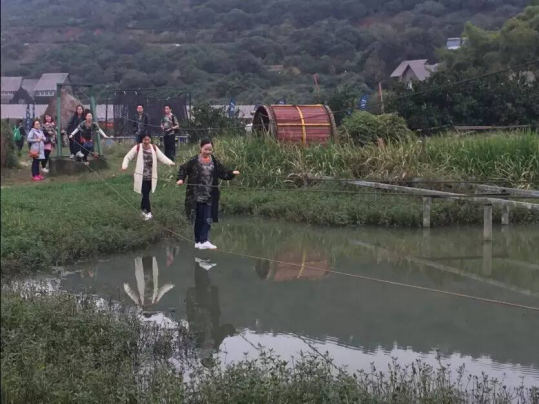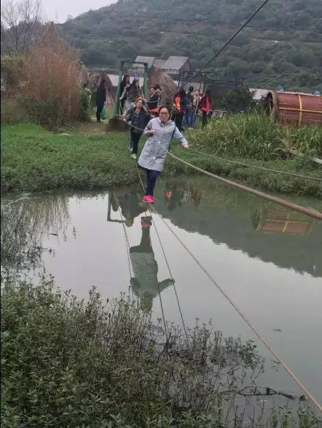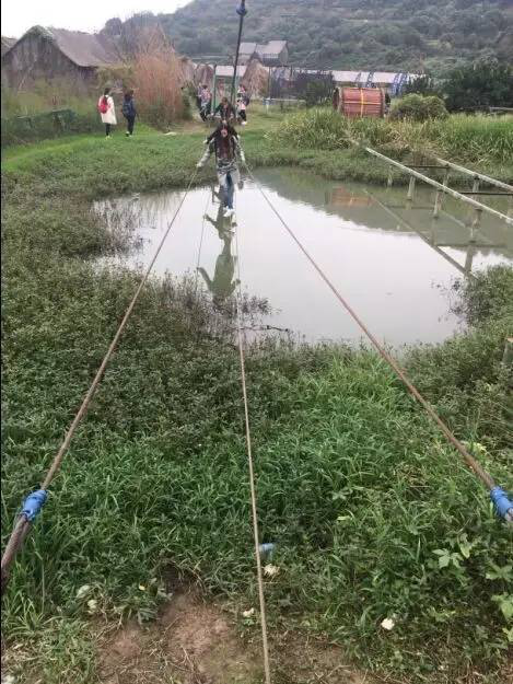 索桥上,康康高蒙一个优美的交汇,弄得我们周围的,全都出了一身冷汗,两边关注的小伙伴迅速稳住钢索,OK,完美通过,惊险,精彩!