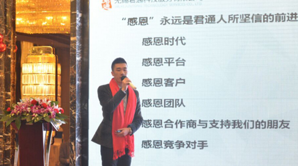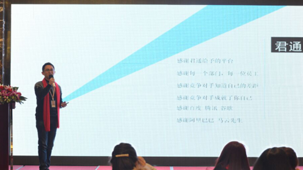尹总工作报告的部分便给我们详细的分析了过去的2016年互联网发生的大事件和咱们君通发生的大事件,让我们更加坚信互联网是永恒的朝阳行业,我们为身为互联网行业的一员,身为君通的一员,感到无比的骄傲和自豪!第二部分对过去的2016年的行政、销售、技术、客服等各部门全方位所取得的成绩和存在的不足做了非常细致的分析。同时对2017年的工作计划和销售部门制定的年度业绩目标进行了非常全面的讲解。报告通篇以“快乐工作、幸福生活”为主线,完美的呈现了公司成立十七年来一贯坚持的核心理念。