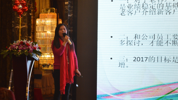 接下来给我们带来精彩工作报告的是我们君通年轻而又充满激情的康总了。作为新产品“外贸快车”的引路人之一,可以说为大家2016年度的业绩带来了不小的提升。康总在工作报告中非常细致的制定了2017年的业绩目标,并进行了分解和说明,给大家引领了方向,我们将在尹总和康总的英明领导下,齐心协力,为新的方向和目标努力奋斗!