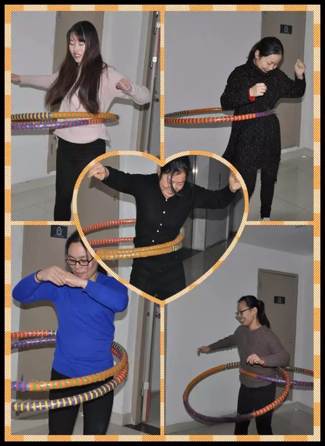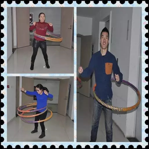 既然这么easy,那么来点难度,挑战两个,三个呼啦圈!顿时感觉有点难hold 住了,果然一大批“参战”的只剩下马如燕和刘红这两名大将了!哈哈,好在还有这两个人带着我们的呼啦圈梦继续挑战下去!重在参与,没有遗憾!