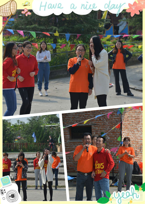 入园后,在浦斌浦团的带领下我们进行了有趣的破冰拓展活动,这次的活动新颖而又多元化。拉开帷幕的是穿越呼啦圈,有所伙伴们围成一个大圆,呼啦圈在紧张的口令节奏中快速传递,在浦团喊停的时候,呼啦圈所停留的时候对应的人即要暖场。大家既紧张又兴奋,紧张的是怕突然在自己这里喊停,兴奋的是所有人在做同一件事情,你传给我,我传给你,相互传递着乐趣。暖场的伙伴们是何等幸运啊,能有机会在大家面前施展自己的才华,这不,大老王和朱老板是幸运儿,宝刀未老,高歌一曲,赢得满堂喝彩。而乔总是行动派,用独特的蛙跳的方式结束了自己的暖场,给大家带来的无穷的乐趣,一个个笑的前俯后仰。