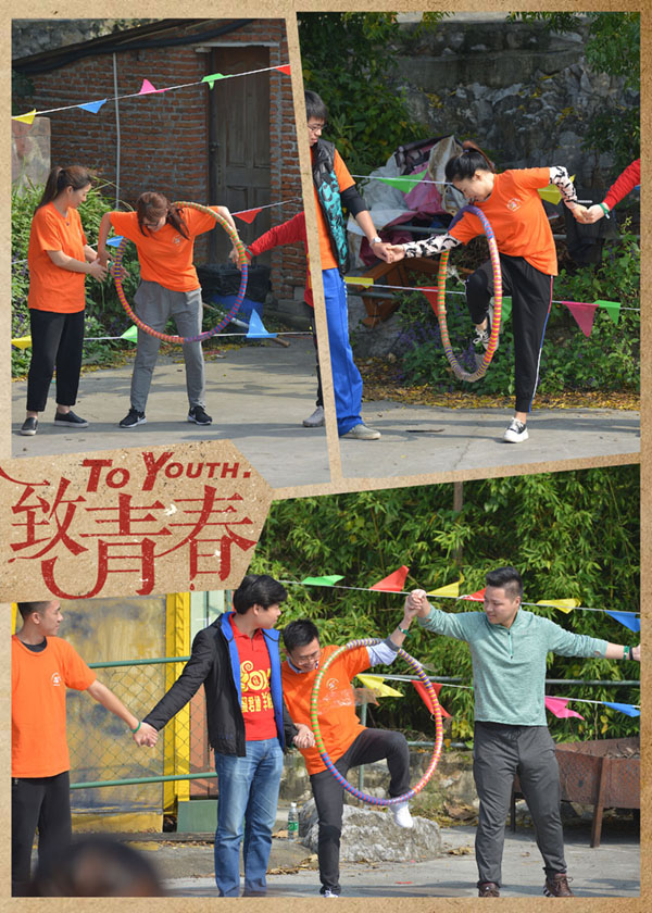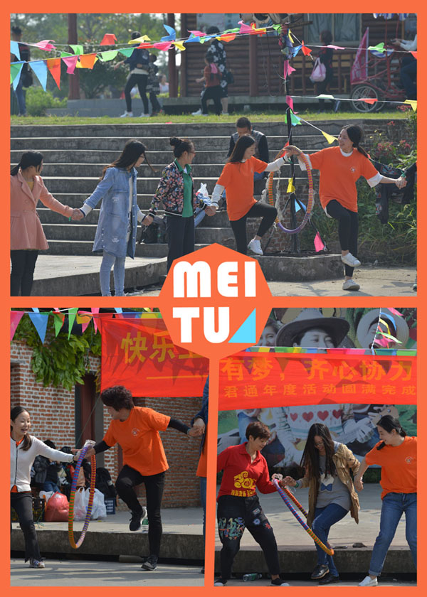 个节目是:传递呼啦圈破冰游戏,手牵手的大家组成了好大的一个圆,我们君通越来越壮大,大家都在拭目以待谁会中奖上台为我们表演呢,呵呵