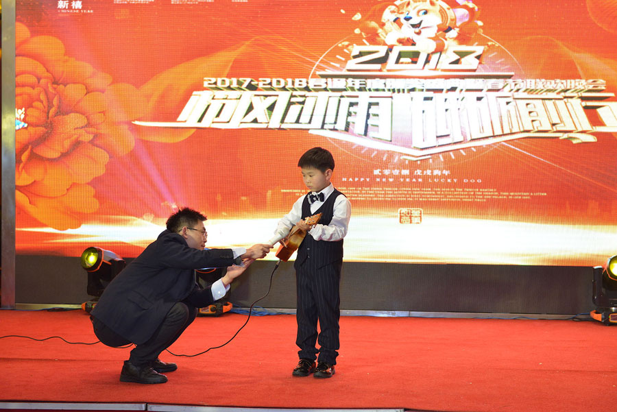 介绍这么多节目,咦?君通的花儿与少年呢?这来了!顾翰中小朋友去年表演了街舞,动感小子的形象实在深入人心,这不今年又很文艺的表演了尤克里里,真是能动亦能静!乔博作为颜值担当自然带来了表演,这葫芦丝吹的是越来越流畅,街舞也是炫酷洒脱。高畅言小美女的笛子演奏也是灵动优美,欢快悠扬,还记得去年带来的舞蹈,真是多才多艺。刘红家的一对姐妹花也是亮点十足,活力四射,默契十足,真是羡慕啊!谈静奕行云流水般的古筝表演也是赢得了阵阵喝彩。节目的当然少不了君通的舞后刘红,一支伞舞给了整场春晚一个闪亮的压轴,掌声欢呼不断,让人意犹未尽!