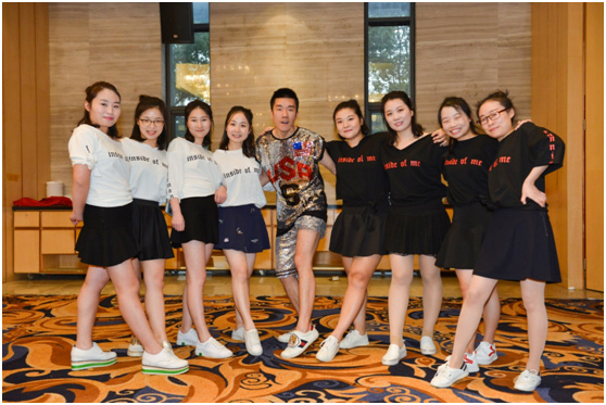 而我们排练节目的时候,时间溜的很快。很快要轮到我们了。在康总的带领下,我们走上了舞台战场。上台的时候我们都好紧张,但是听到激烈的掌声和欢呼声,跳着跳着不紧张了。很快舞蹈结束了,大家纷纷都是感觉好像还不错,尽管当中有一点点小错误,都及时调整过来了。虽然很累,但是听到台下的观众都说我们跳的很好,大家一点都感觉不到累,心情都很高涨。每个人都笑的特别开心。