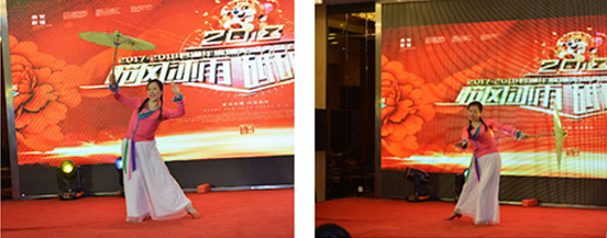 颁奖仪式结束后,便是我们期待的节目表演了,今年的表演节目很丰富,我们也要上台表演跳舞,心情很激动,感动非常开心的是康总也参加了,和我们一起表演舞蹈节目。但是还有很多动作不熟悉,大家纷纷抓紧一切时间排练。还有服装的设计,何淑琴在设计方面真的是很有天赋,把我们的演出服设计的各种各样,很是出彩。我们的节目是排在第九个,开始的节目有小品,唱歌,演奏,舞蹈,多彩多样,每个表演让大家都饱受眼福。