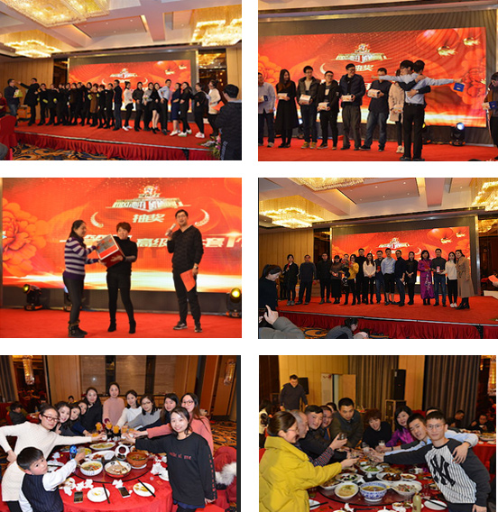 随着一个接一个的精彩表演,我们的晚宴也很快开始了。晚宴上菜品十分丰富,酒水饮料样样齐全。大家吃的很开心。过程中领导同事之间敬酒你来我往,气氛非常热络。令人惊喜的是宴会期间还有表演节目的奖项,我们表演的嗨翻2018也顺利获奖。这份荣耀来的很是意外惊喜,小伙伴们都开心坏了。当然晚宴还有我们期待的环节——抽奖。随着抽奖活动一轮一轮进行,在主持人宣布中奖号码时候真是紧张的时刻,大家的心情一会高涨,一会低落,欢呼声,尖叫声此起彼伏。很幸运的是我们那一桌几乎全部都中奖了。大家都感到非常满足。随着抽奖的结束,年会也在小伙伴的欢呼声中圆满结束。