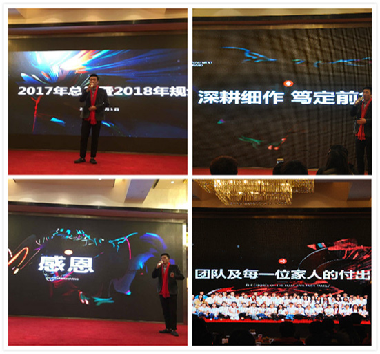 接下来依次是技术部的杜总,客服部的刘苏,设计顾工、行政顾雪萍、人事何淑琴、市场大区经理赵经理、张经理、宋经理、电销高经理齐经理等纷纷上台各职责部门2017年度的工作做总结报告与2018年工作的展望。我们的大家长尹总也做了精彩的发言,希望大家一起齐心协力,携手奋进,撸起袖子加油干!