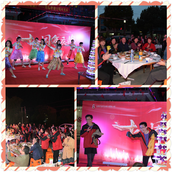 活动过后伙伴们都换装啦,经过一番打扮,美女帅哥们齐上阵,来到签名墙签到留影,这气场阵势一点不输明星啊!签到留影完毕,我们的镜头聚焦到主会场---18典的晚会现场。璀璨夺目,星光熠熠的舞台场景增添了庆典的气氛。一波又一波的高潮,久久未能平息,才子佳人们的载歌载舞,市场部的独舞,团舞,客服热辣的草裙舞,新晋团队歌王康总,谈经理,朱经理的献唱; 吴老师夫妇的京剧表演以及还有来自远方的宁夏艺术团的张老师,因为被我们的庆典氛围感染,自发上来表演了一段京剧,把晚会的前半段推向了。康总精心准备的抽奖奖项也是掀起了一股热浪,设置了ipad作为奖项,虽说初秋的夜晚有点小凉,但是因为我们十八周年晚会的举办,引来了当地居民的围观,拍手称赞,使得大家觉得格外的温暖。客户的祝福视频看的让我们君通人感到自豪与感动,欢快的时光总是觉得时间很快,晚会在意犹未尽中结束,但是热度一直在持续。