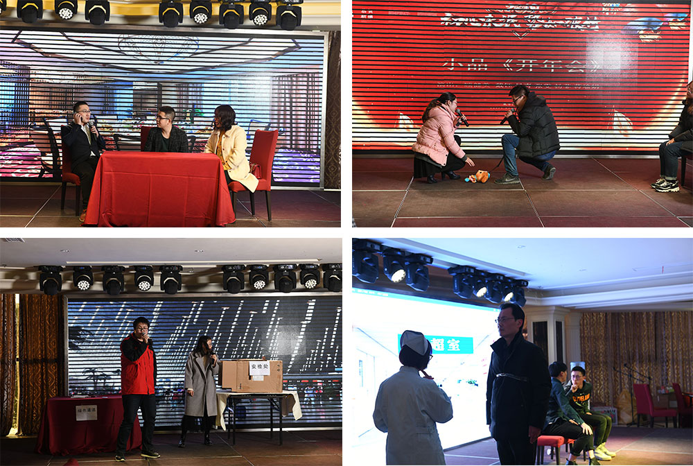 技术部的同事们全员出动先后给大家送上小品《同学聚会》、《开年会》和《安检》,轻松幽默的表演令人忍俊不禁。而大咖云集的豪华创作阵容小品《B超风云》把晚会推向了一个的高潮,现场欢呼不断,掌声不断。