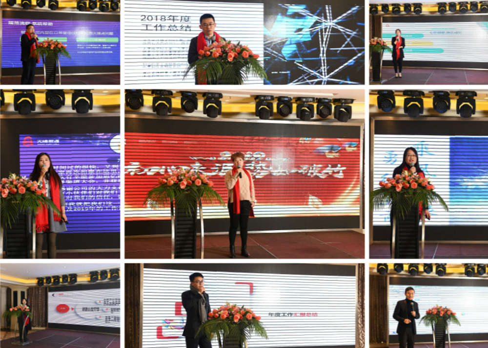 接下来各个部门主管依次进行了各自的年度总结报告。首先是技术部的杜总,从技术方面展现了我们公司的硬实力;设计顾工向我们介绍了网站未来的发展方向;客服部主管刘苏干练亮相,强调提升服务增强公司的软实力;行政人事部何淑琴则着重指出要吸引更多的人才,指定培训计划,完善公司管理制度是明年的重点工作计划。市场大区经理赵经理、张经理,电销部叶经理,齐经理也纷纷上台制度了明年的目标。我们的大家长尹总也做了精彩的发言,希望大家一起齐心协力,携手奋进,创造新的辉煌!