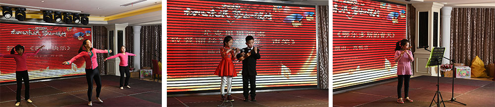 每年小朋友的节目也是特别让人期待的,各个都是多才多艺的。高畅言小朋友为我们带来笛子独奏《鄂尔多斯的春天》,小帅哥顾瀚中给我们带来尤克里里《致爱丽丝》和《沧海一声笑》,市场部刘红和两个女儿给我们带我欢快的舞蹈《新年快乐》!