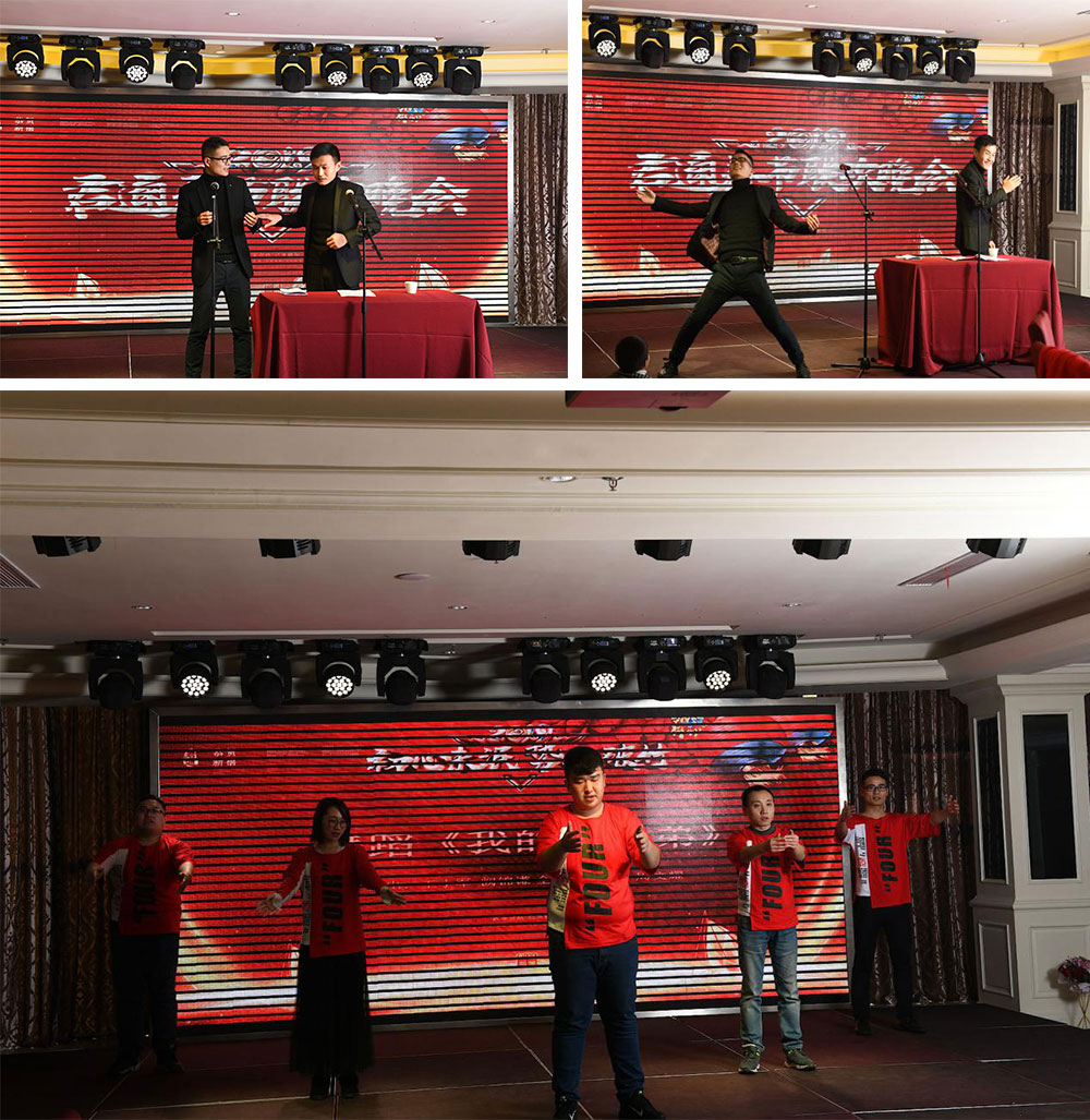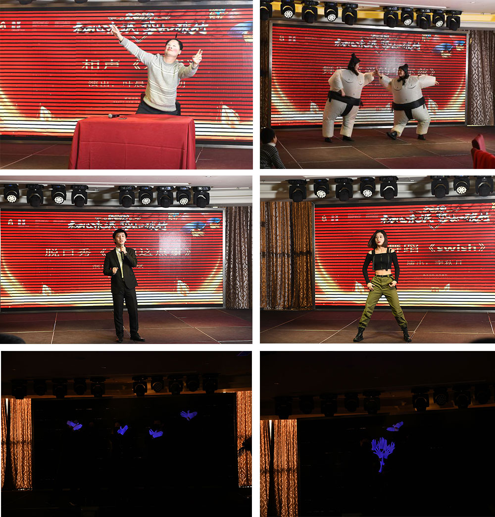 有舞蹈自然也会有语言类节目,技术部和市场部分别带来小品《同学聚会》,《开年会》,《B超风云》,《安检》等诙谐幽默,搞怪有趣的表演也赢得了台下阵阵掌声!