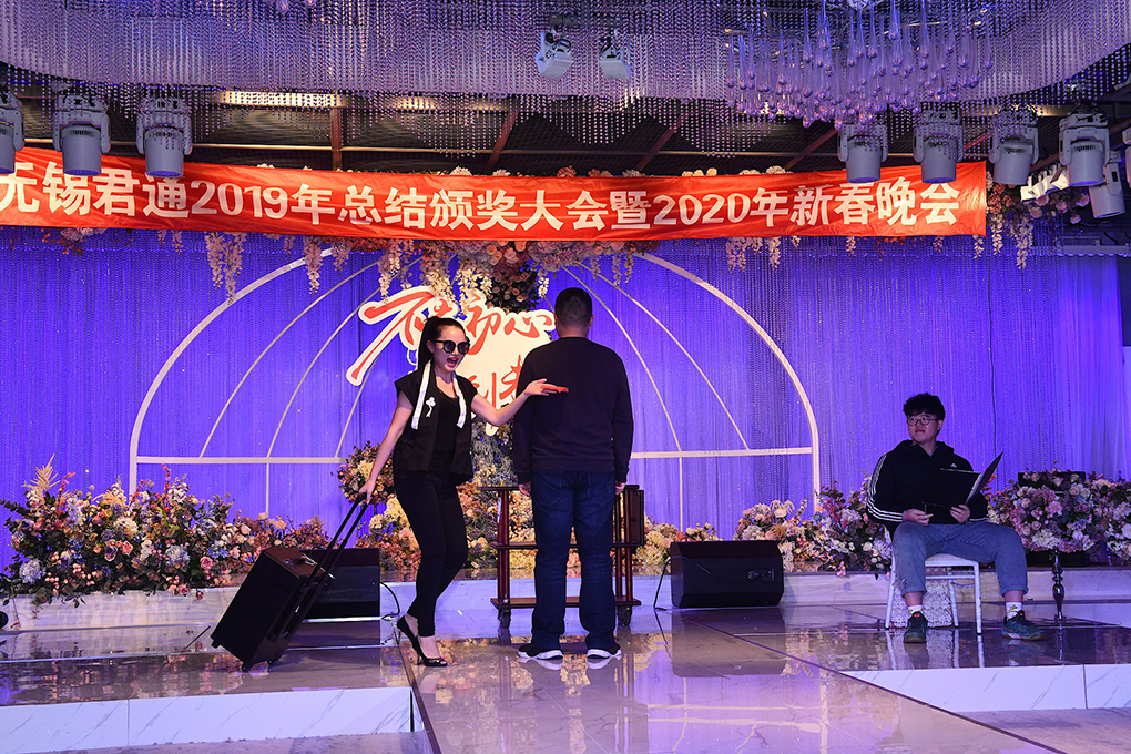 年会总共分为3部分;早上是公司总结大会;下午是我们的春晚;晚上是我们的晚宴时间