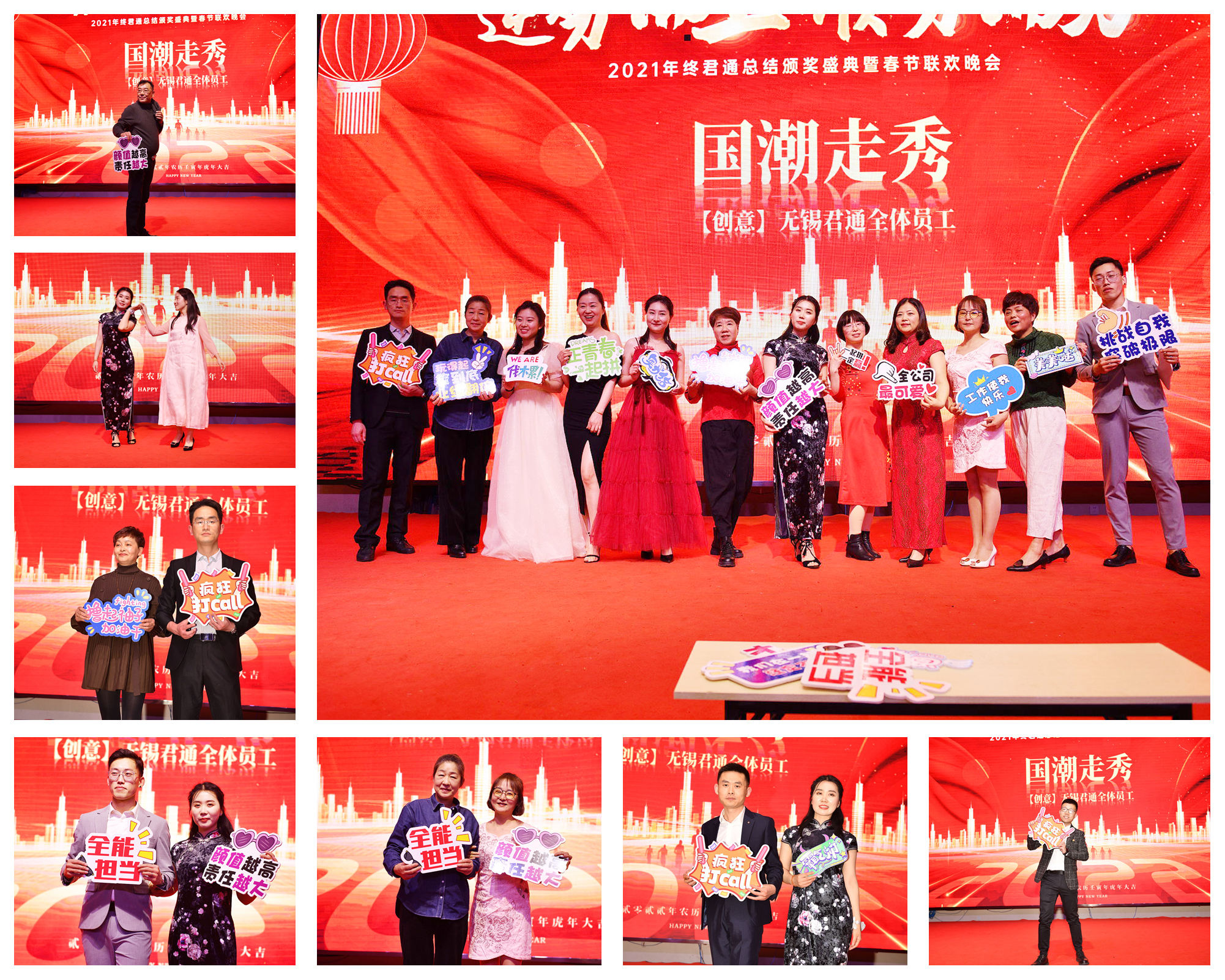 最后每位君通人展现自我的时刻到啦!摄影师找好机位、为我们一一记录最美妙的一刻:全员带来创意节目《国潮走秀》将晚会推向高潮: